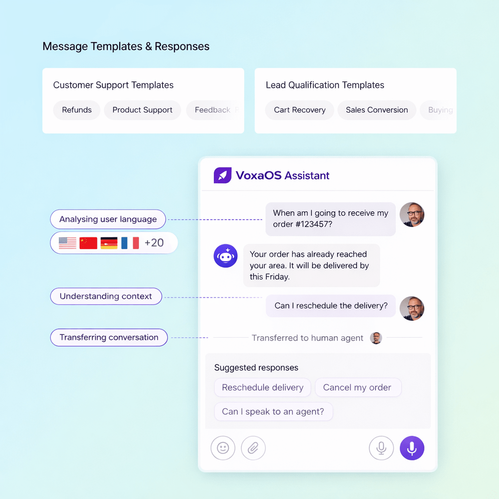 VoxaOS AI understands and replies in 50+ languages automatically, enabling businesses to support customers across regions without barriers.